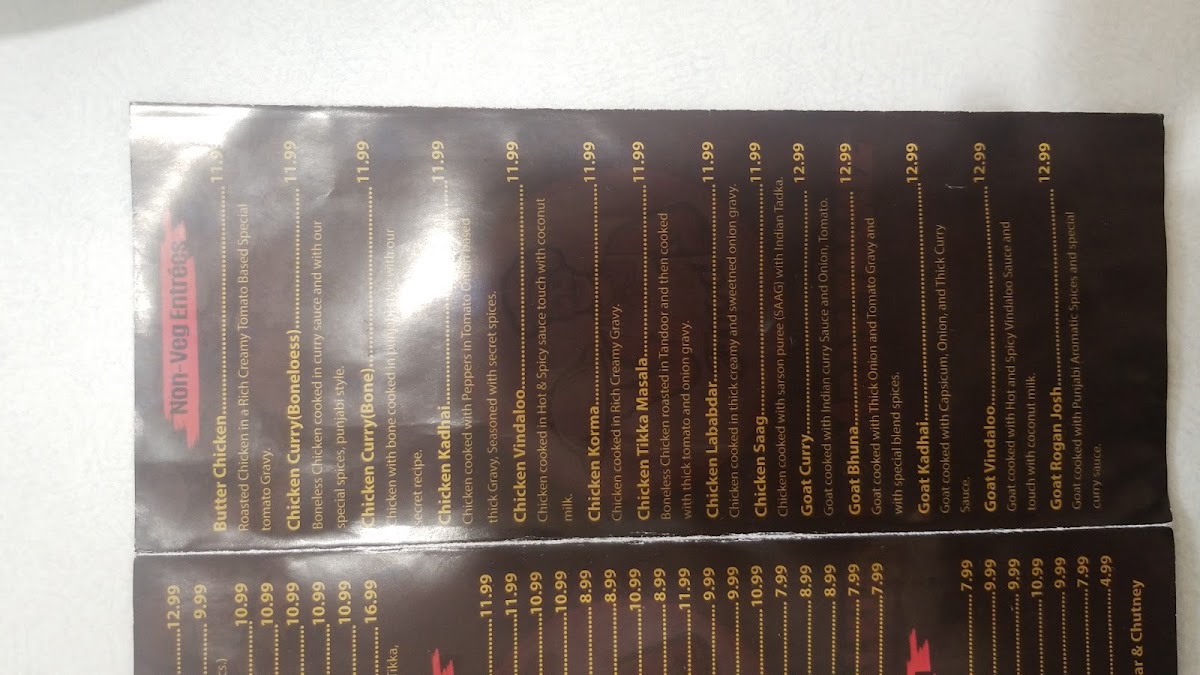 Tender goat in a rich masala sauce, served with two thin and soft Indian flatbreads.